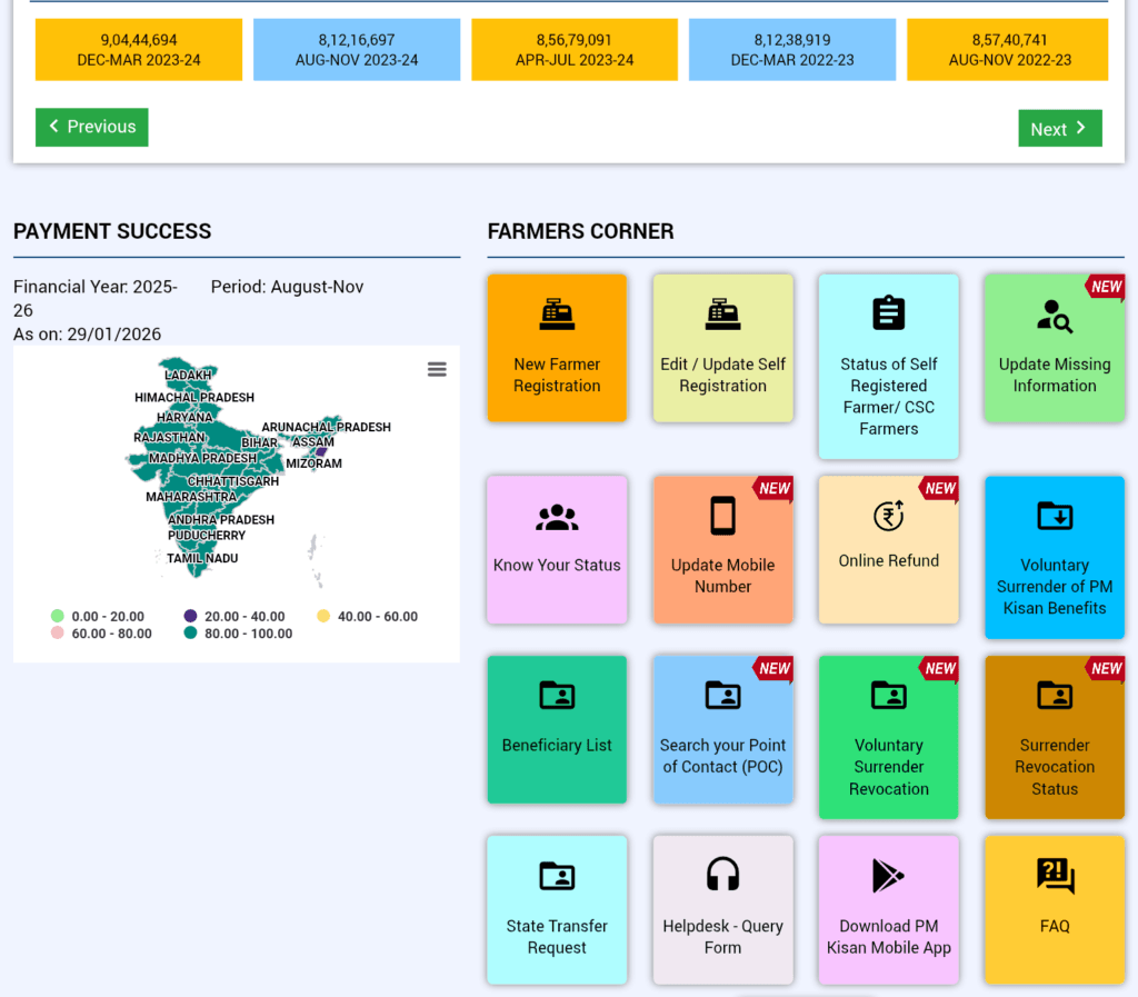 समाधान सीधा है। अगर पिछली किस्त देर से आई थी या नहीं आई, तो तुरंत स्थिति चेक करनी चाहिए। 🔗 Official URL: https://pmkisan.gov.in Beneficiary Status सेक्शन में आधार, बैंक और जमीन की जानकारी मिलती है। समय रहते सुधार न किया गया तो अगली किस्त भी रुक सकती है, जिससे खेती की तैयारी पर सीधा असर पड़ता है।